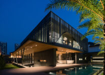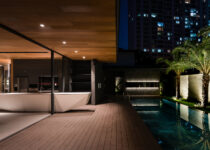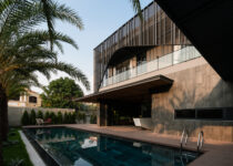 No jardim – principal espaço privado da família – está localizada a piscina, acessada diretamente pela cozinha e pela sala de jantar. O espaço é coberto com uma marquise para proteger do sol tropical, enquanto permite que os usuários experienciem os elementos naturais.