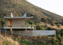 Casa H ocupa um site em Zapallar, e tem um caminho em degraus que leva até uma praia próxima. Sua forma gritante e alongada cria um forte contraste contra a montanha exuberante.