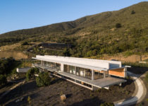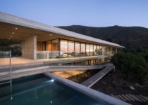 A extensa linha costeira e a dramática topografia do Chile criam cenários espetaculares para a arquitetura contemporânea. Outros projetos residenciais no país que aproveitam ao máximo seus arredores incluem uma casa estreita de concreto que fica em um penhasco na península de Coliumo por Mauricio Pezo e Sofia von Ellrichshausen, uma casa no lago com uma moldura preta de Apio Arquitectos, e um casa de madeira escura com interiores de madeira compensada leve um pedaço de terra rural por Ampuero Yutronic.