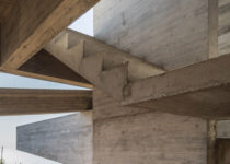A firma local Felipe Assadi Arquitectos construiu a casa usando concreto armado, com duas grandes vigas que abrangem o comprimento do telhado e o primeiro andar.