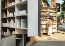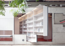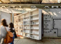 Ao estender os icônicos painéis rotativos na fachada da galeria criando estantes que invadem o espaço público da calçada, Abruzzo Bodziak prepara o palco para uma exposição moldada pela participação e diálogo do público. As prateleiras, construídas em MDF pintado, contêm uma seleção de livros de arquitetura icônicos publicados nos últimos 35 anos, selecionados pela recente “Pesquisa Global” da livraria. Os livros são destacados com a ajuda de molduras personalizadas em alumínio, que também exibem breves declarações que recontextualizam sua relevância. As prateleiras são preenchidas ao longo da exposição com contribuições adicionais de editores, organizações sem fins lucrativos, coletivos criativos e visitantes. Ao permanecer relativamente escassa, no entanto, as prateleiras sugerem uma trajetória para o futuro dos livros de arquitetura a serem escritos ainda.