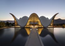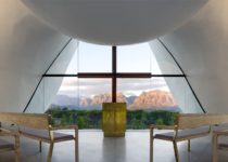 Buscando a inspiração poética no Salmo 36:7, a forma branca é concebida como uma estrutura leve e dinâmica que parece flutuar dentro do vale. Uma lagoa reflete a imagem da edificação e enfatiza a leveza da estrutura. A capela surge da terra plana sobre a qual está sua base, proporcionando um ponto focal hierárquico para o entorno. A nova vegetação inclui um vinhedo e um pomar de romãs, que criam um oásis verde no local.