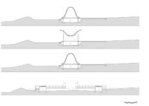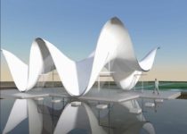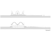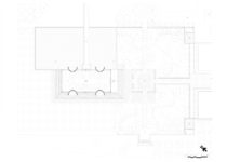 Para manter a forma da cobertura e o espaço de encontro puros, outros elementos do programa do edifício foram escondidos em sua base ou discretamente dentro dos cantos externos no jardim circundante.