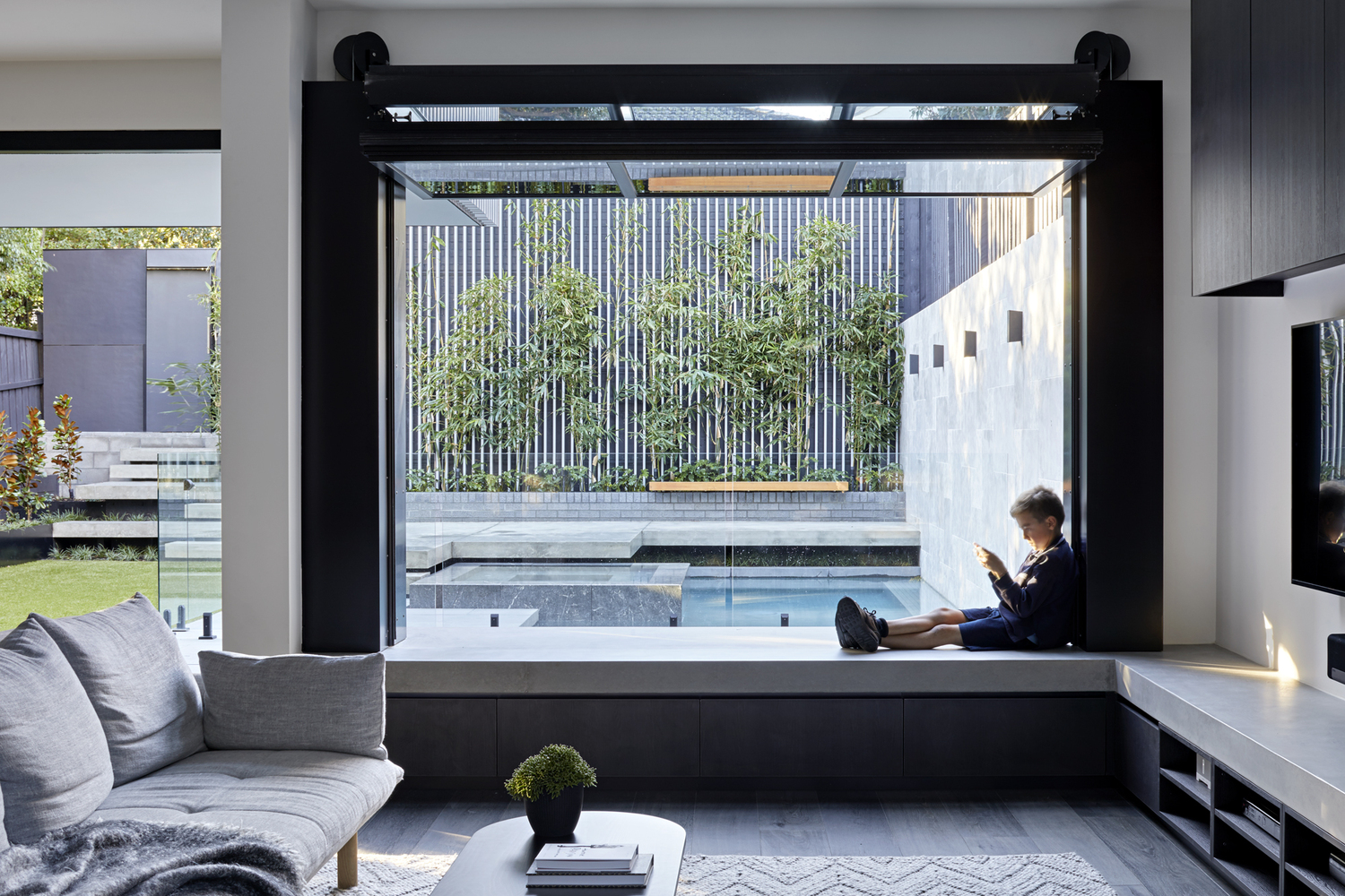 Nossa resposta foi continuar a largura do corredor de entrada existente com uma escadaria característica e um “pátio” interno de luz, que por sua vez leva à sala de estar aberta e planejada, cozinha e área de jantar com portas dobráveis voltadas para o norte e que se abrem para o quintal.