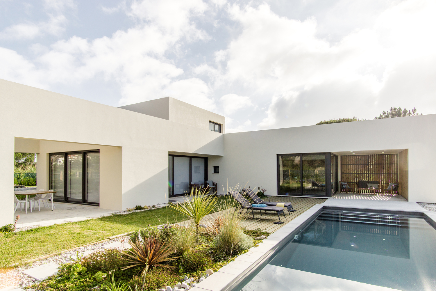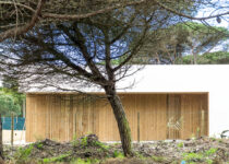 Descrição enviada pela equipe de projeto. O lugar, a poucos metros da Lagoa de Óbidos, é caracterizado por árvores de Pinheiro Manso e pela densa vegetação da Reserva Ecológica Natural a Sul, criando um forte sentimento de encerramento natural. O projeto procura enfatizar esta especificidade natural do lugar, orientando os espaços principais da casa para Sul, de forma a criar uma forte relação com a paisagem e permitir receber a melhor luz solar. Do lado oposto, localizam-se os espaços mais reservados da casa, com um grau de privacidade maior. Esta configuração define duas zonas distintas, a diurna e a noturna.