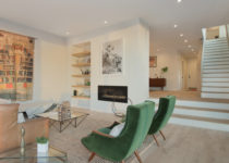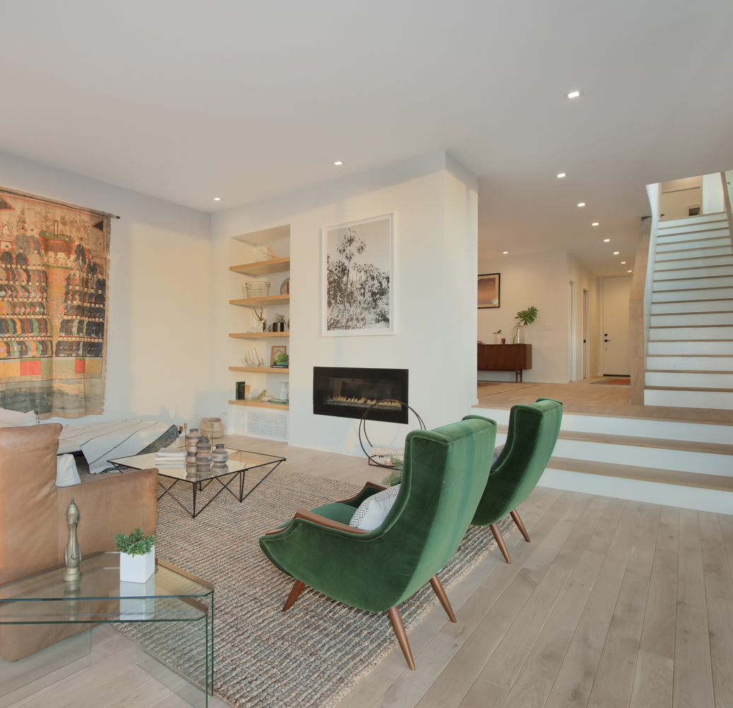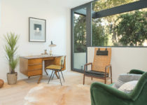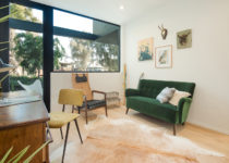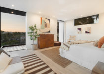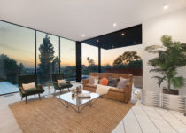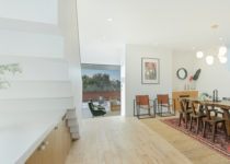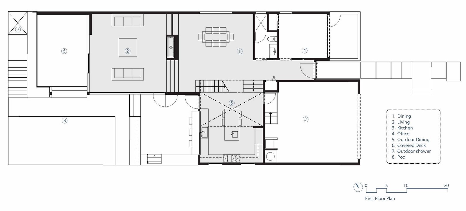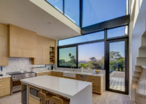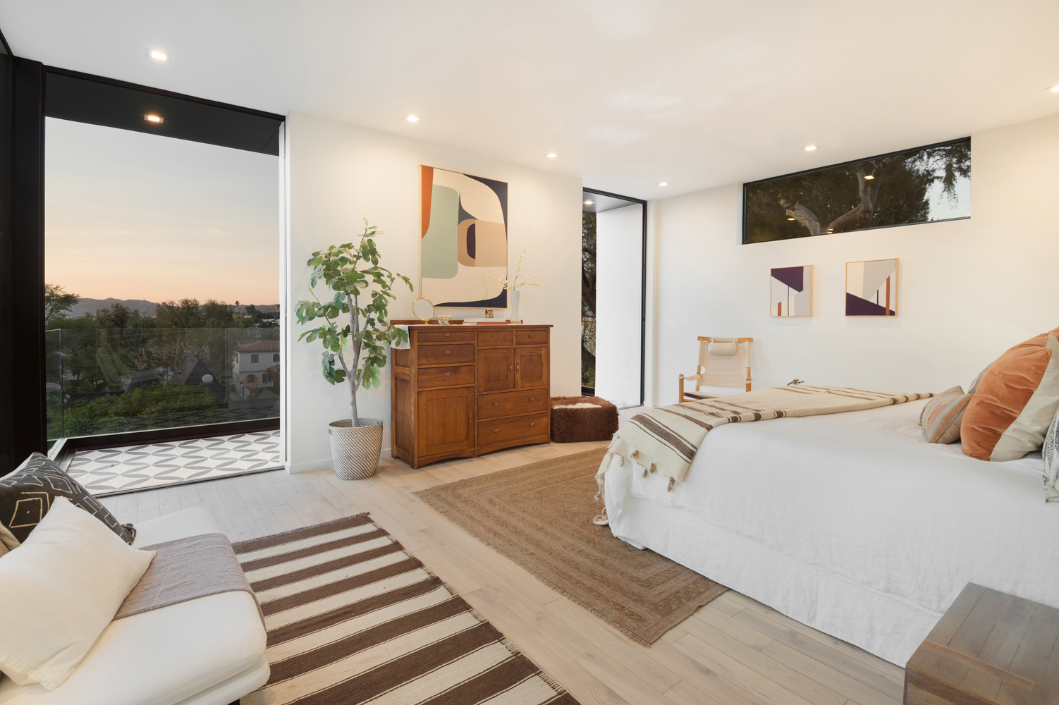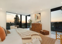 O terraço privado, resguardado da rua e dos vizinhos, é protegido pelos espaços interiores, promovendo acesso direto a piscina, jardim e áreas de estar ao ar livre. Um outro deck exterior, com vistas para o por do sol, foi colocado próximo à sala de estar da família, enquanto a suite principal recebe uma varanda com vista para o Griffith Park.