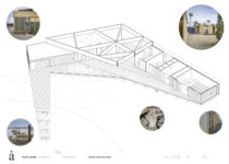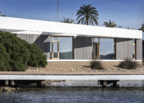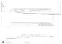 Além da polaridade funcional descrita, a intervenção também representa uma fronteira onde é expressa a dualidade de paisagens que convergem neste terreno de apenas 1000 m2. Junto com os traçados urbanos e com orientações nordeste e noroeste, os volumes são na maior parte opacos, duros e sem muita profundidade. Na sua vertente meridional, no entanto, o edifício se desdobra gerando uma ampla plataforma que une os dois programas e se adentra alguns metros na lagoa como doca. A estrutura de coroação dos volumes adquire profundidade na plataforma e protege o interior da incidência solar direta.