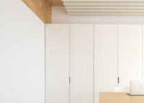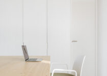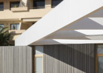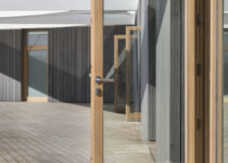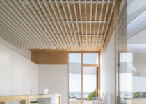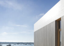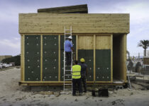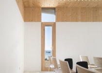 Através de uma tectônica baseada quase em um único material, aparece o edifício leve, construído em seco e com baixo impacto ambiental. Semelhante as casinhas náuticas que tradicionalmente se levantavam no litoral da ilha, a madeira representa o material por excelência, expressa em diferentes formas e espécies, de acordo com os requisitos. Assim a estrutura principal executada por meio de CLT, permitiu convergir em boa parte dos painéis de madeira contra-laminada, estrutura, fechamento e acabamento. Uma harmonia que continua na solução escolhida de fachada ventilada, onde sarrafos e ripas de acabamento são executados em pinus R.3.2 que ao longo do tempo vão se converter em uma característica pátina cinza.