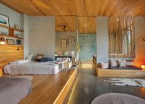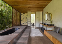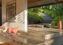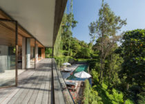 Inspirado na arquitetura tradicional de Bali, o projeto foi organizado em diferentes “pavilhões”, os quais acomodam diferentes funções. Os espaços comuns são mantidos completamente abertos e integrados enquanto que a parte mais privada da casa, funcionam como volumes independentes.