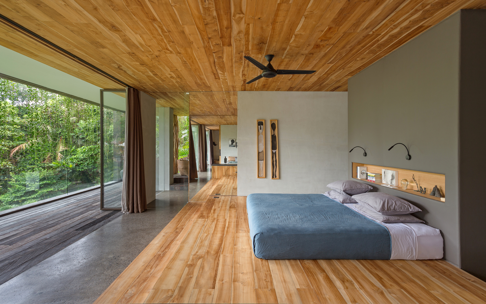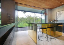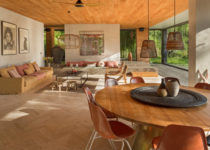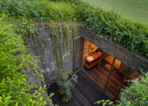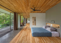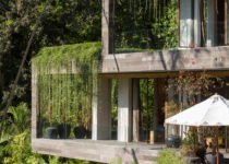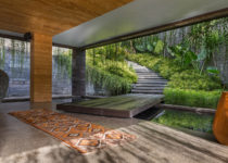 O projeto é como uma caixinha de surpresas, o espaço vai se revelando à medida que nos deslocamos pelos edifício, desde o estacionamento, no ponto mais alto, até o último jardim em meio à floresta. Do interior, a única perspectiva possível é o extenso panorama da floresta tropical na qual a casa está inserida, seja no primeiro, no segundo ou no terceiro volume, até o momento em que mergulhamos em meio a natureza e descobrimos que este é o caminho que leva ao quarto de hóspedes no nível mais baixo do terreno.