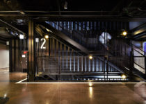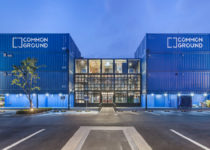 Descrição enviada pela equipe de projeto. Common Ground é o resultado de um experimento de revitalização de espaços não utilizadas no meio da cidade. Ao produzir módulos em uma fábrica, transportá-los e montá-los no local de construção, foi possível reduzir o tempo de construção do edifício de 5300 m2 em cinco meses.