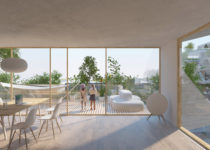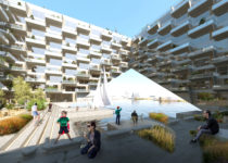 Esses elementos inclinados – não diferentes daqueles encontrados na 8 House de BIG em Copenhague e VIA 57 West “courtcraper” em Nova York – destinam-se a permitir que os moradores escalem o telhado e desfrutem as vistas sobre a cidade.
