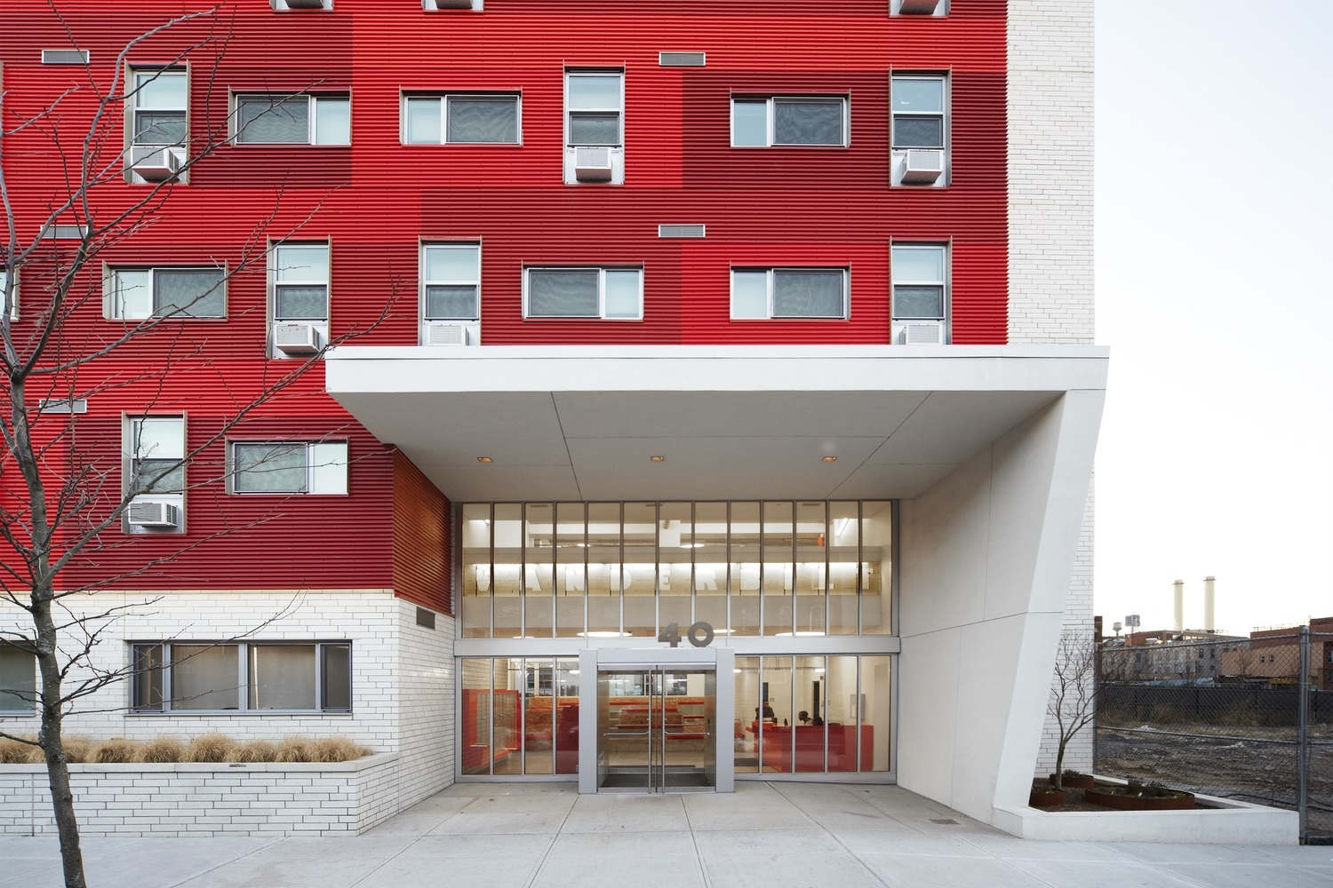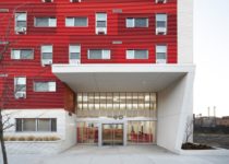 The Schermerhorn in Brooklyn’s Boerum Hill offered similarly difficult conditions, sitting atop two subway lines. According to Designing New York, “building…over the two subway lines that run below the site required a truss and cantilever structure that took up the majority of the construction budget.” The result of building on a difficult site, though, is 109 units for formerly homeless people and people living with HIV/AIDS.