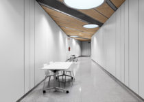 On the one hand, the building should serve as an icon of the university to which it belongs, projecting to the exterior an image based on technological leadership and innovation; and on the other respecting and interacting with the low density of the residential neighborhood where it was incorporated. Given these constraints, the building takes advantage of the hillside slope to organize its functional program from top to bottom, that is, distributed public areas on the access floor (highest level) and favoring the sectors of greater specialization of the project in the lower levels of the terrain.