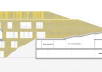 The building expresses its symbolic value through the work done in the kitchen – a pile of dishes in a disorderly way – following the contour lines.