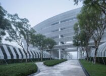 In traditional campuses, nature and education are like two separate systems that are naturally blocked, so the architects want to introduce nature into the campus. Outside the annulus teaching buildings, there presents forest state, which separates the hustle and bustle of the city. A central garden is set up in the inner ring, with overlapping and undulating objects, ensuring the transparency and connection between the inside and outside.