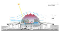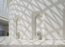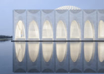Based on traditional mosque, the building subtly interprets the spatial structure of mosque with new materials and technologies. The surrounding arches shrink into elegant curves from the bottom up, while the cambering petal-shaped arches of the reflection in the water look even more vivid and graceful. The dome sees the translation and abstraction of Islamic symbols rather than simple mimicking. We constitute the dome with petaloid shells and creatively transform the interior space into a semi-exterior roof garden flooded with sunshine, fresh air and vegetation.