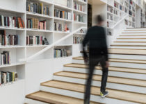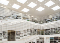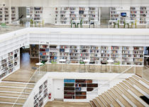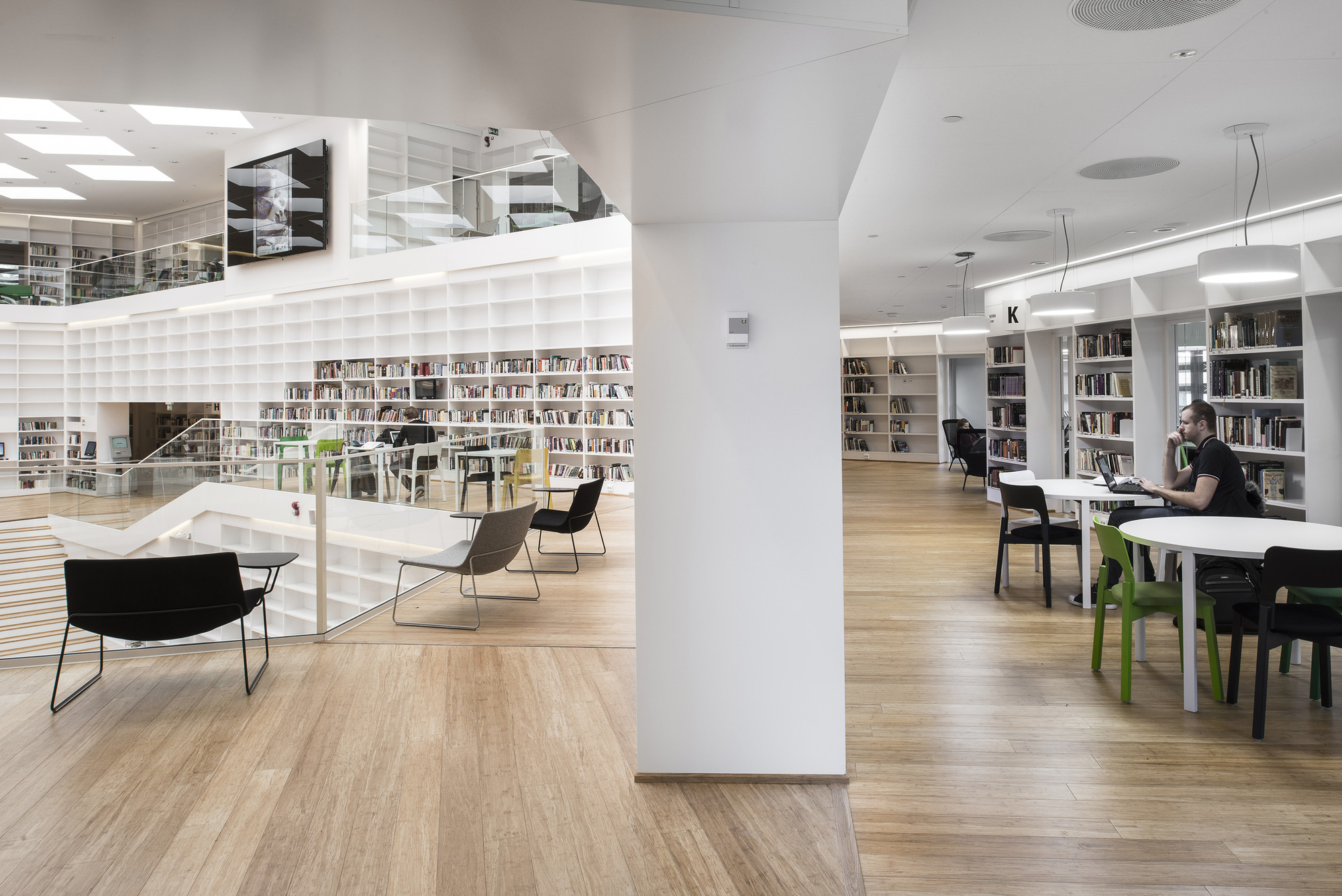 The spiral of knowledge creates a varied study environment allowing the students to move about in the heart space of the library or to withdraw to more quiet and calm areas along the facade. The variation of sound levels and the differentiation of activities creates a versatile library that is rich in experiences. The building has its very own spatial character uniting library and multi-media functions to create synergy with the existing university complex.