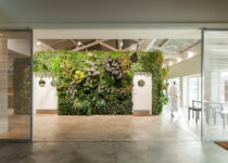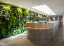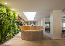 The installation of a cafeteria and restaurant on the ground floor, linked to the terrace, led to the discovery of a mural by the artist Sol Lewitt, dated 1990, which was fully restored. The centrally located kitchen is flanked by walls covered by vertical gardens.