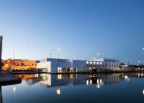The interior reveals the structure of the building, giving an idea of the different areas that compose it. Finishings are minimal, with concrete flooring and white surfaces. Lines of lighting work to emphasise the interior drama of the space, while circular lamps on the north and the south facades are a final touch to emphasise links with the original 1940 project.
