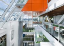 Numerous work zones surround the atrium, designed to house 100 employees each in adaptable neighborhoods. An arterial staircase links the zones forming a ‘Meeting Tree’, emblematic of the interconnectedness of Macquarie’s client relationships. The Main Street on Level 1 offers communal spaces that are highly conducive to corporate and philanthropic events and includes a café and dining areas. Within the office floors ‘Plazas’ were modeled after collaboration typologies—the Dining Room, Garden, Tree House, Playroom, and Coffee House, where cross-pollination among business groups is encouraged through spontaneous encounters.