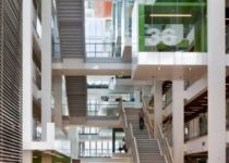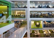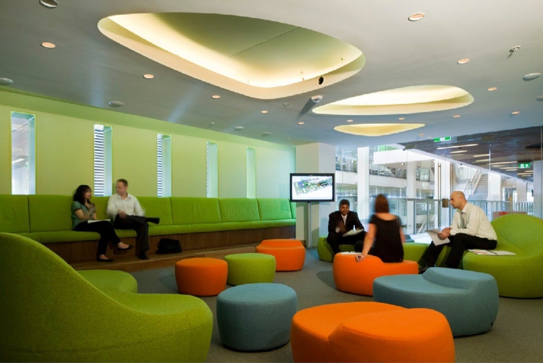 One Shelley Street has been designed to the highest levels of green star or LEED efficiency, using revolutionary technologies like harbor water cooling, chilled beams and zone controlled lighting. Overall energy consumption has been reduced by 50%. The interior staircase, linking the various neighborhoods, has reduced the use of the elevators by 50%. There has been a 78% reduction in paper storage needs and a 53% reduction in printing paper. Mail is scanned and distributed electronically, decreasing the need for storage. Employees have lockers in which to store personal addenda, and are deterred from creating paper waste, there’s not a trash can in sight. The business benefit of ABW is the elimination of ‘churn’—the cost of moving groups and redefining spaces. Investing now meant savings in the future and Macquarie is providing an unmatched quality of life for its employees—benefiting clients, investors, shareholders and the environment.