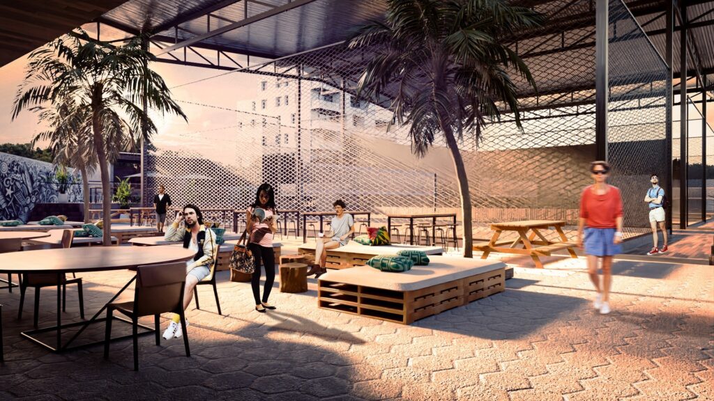 In addition to integrating the large living area with lounge, bar, restaurant, and event area, the main roof has an innovative architectural design with water breaks that give movement and dynamism to the space. This characteristic, besides being aesthetically pleasing, provides a sense of modernity and sophistication.