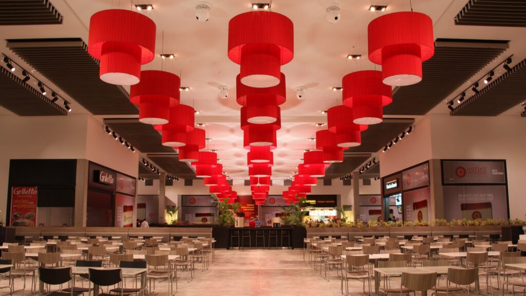 Outlet Premium Brasília is a charming and monumental building located on top of a hill, with a view that stands out at a distance of 7 kilometers in the surrounding landscape. With an area of 29,000 square meters, the project was designed to prioritize courtyards with natural lighting and “cerrado” vegetation, creating an unforgettable shopping experience. With a land area of 120,000 square meters, the central implementation of the building favors access from multiple points, generating a lively and dynamic circulation in all corridors.