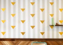 Other custom wallpapers, including geometric and interweaving patterns in pastel tones hand-painted over in gold and green, continue this theme.