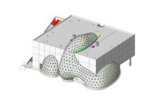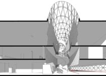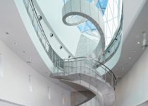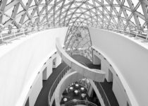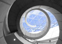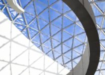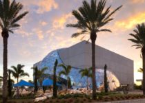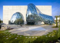 The design opens up the 18-inch-thick concrete walls with a free-form glass geodesic structure that intrigues visitors while bringing daylight and bay views into public spaces. The 75-foot-tall geodesic glass “Enigma” and 45-foot-tall “Igloo” are formed by 1,062 undulating faceted glass panes, with no two exactly alike.