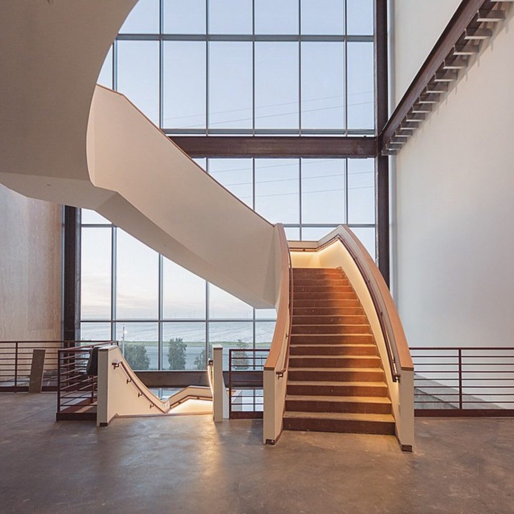 The campus is notable for its absence of “Gehryisms”: The architect’s trademark flourishes are kept to a minimum, such that a faintly distorted staircase and a dash of titanium cladding on the exterior are the only clues as to the authorship of the building. The restrained design responds to Zuckerberg’s desire for a space that is “unassuming, matter-of-fact, and cost effective”: given these priorities, some might be bemused at his choice of architect for this project.