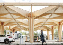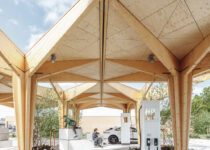 As estações de carregamento consistem em uma série de “árvores” estruturais. Elas têm coberturas muito semelhantes às copas das árvores que oferecem sombra e proteção enquanto definem um ambiente verde e uma atmosfera relaxante. Um contraste marcante com uma estação de serviço tradicional, onde as filas de veículos, odores de combustível e escapamento são comuns.