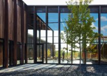 Com seu revestimento imperfeito das chapas de aço corten de cor ferrugem e seus elegantes painéis envidraçados de piso a teto, as fachadas do edifício enfatizam tanto as características de seu contexto industrial quanto sua função representativa. No interior do edifício foram utilizados materiais crus e industriais com refinamento, o que estabelece uma atmosfera cordial para o espaço interno. O uso de aço pintado de preto, pisos de concreto polido, painéis de malha metálica expandida e paredes de madeira carbonizada, caracterizam espaços cujas atividades de produção e exposição estão integradas.
