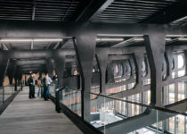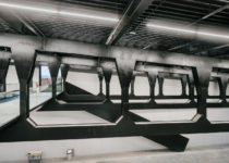 A sala de exposição é sustentada por onze treliças metálicas customizadas e cortadas a lazer com aproximadamente 45 metros de comprimento. Uma ‘skywalk’, espécie de ponte que percorre a estrutura da cobertura, permite que os visitantes tenham uma vista diferenciada dos detalhes do espaço e da estrutura.