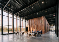 A arquitetura surpreende tanto quanto seu entorno. Com uma construção de estrutura metálica e vidro com acabamento em aço corten, o edifício conecta a faixa suburbana, caracterizada pela cultura fast-food, shopping center e postos de gasolina, com a linguagem arquitetônica dos campus industriais de arquitetos como Albert Kahn e Ludwig Mies van der Rohe. Aqui a história do “Rust Belt”, a maior e mais antiga zona industrial dos Estados Unidos é unida à produção high-tec computadorizada: a funcionalidade encontra a representação e o pragmatismo encontra o refinamento.