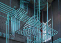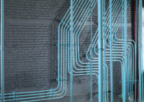 O esquema seria possível supondo que existe um grande número de linhas que poderia ser utilizado para o sistema funcional das instalações. Nossa operação principal é adicionar mais ao sistema através de desenho ordenador destes condutores. Os colorimos de azul turquesa para que sejam visualmente atrativos e se destaquem no espaço.