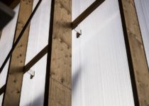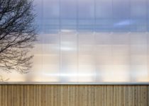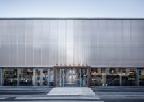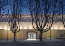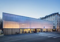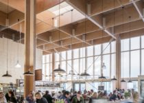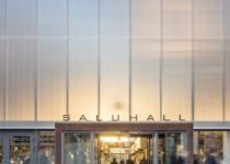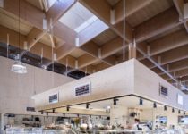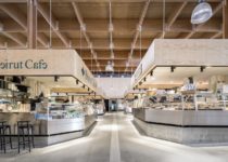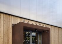 A fachada do edifício temporário consiste tem uma faixa inferior revestida com listas verticais de pinos sem tratamento de tamanho variável e montadas em lâminas de madeira compensada. Na esquina sudoeste do edifício, ao longo da fachada leste, a parede de madeira dá lugar ao vidro, proporcionando vistas ao mercado central e pontos de vista para os clientes nos restaurantes. A parte superior da fachada está completamente revestida de um sistema modular de várias lâminas translúcidas de policarbonato, proporcionando luz durante o dia e fazendo com seja iluminada durante a noite. A estrutura de grande escala está desenhada e construída com um sistema de montagem modular de suportes de aço que permite a rápida construção e desmontagem com a possibilidade de reutilizar e ter uma função alternativa em outro lugar.