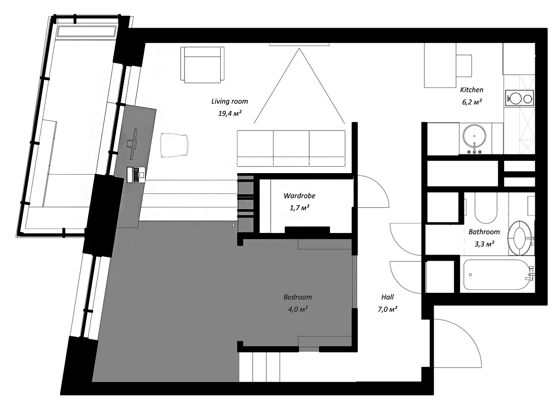 Flat 35m2 / Studio Bazi