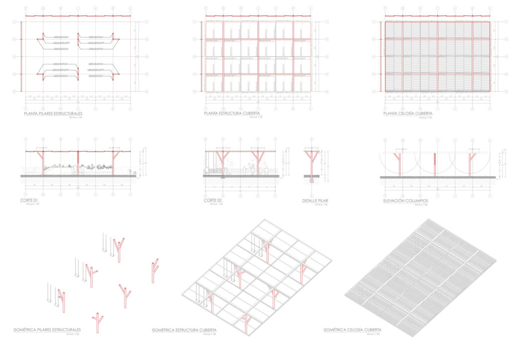 O projeto consiste em uma esplanada central multiuso, sombreada por uma pérgola fotovoltaica capaz de abastecer a praça inteira com luz. Estando situado em um local desértico, a sombra se faz muito necessária para permitir que a praça seja habitada durante o dia, e não só nas manhãs e finais de tarde. Ao redor desse núcleo foram distribuídos diversos programas: um parque de skate, uma área recreativa infantil, áreas de estar, mirantes, áreas verdes e circulações, tudo contido por massas vegetais e árvores.