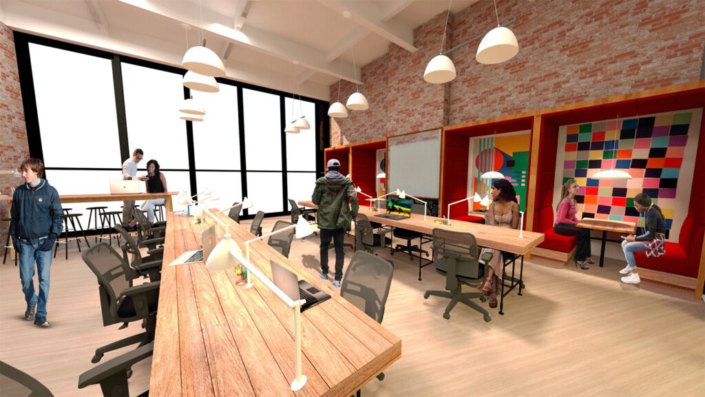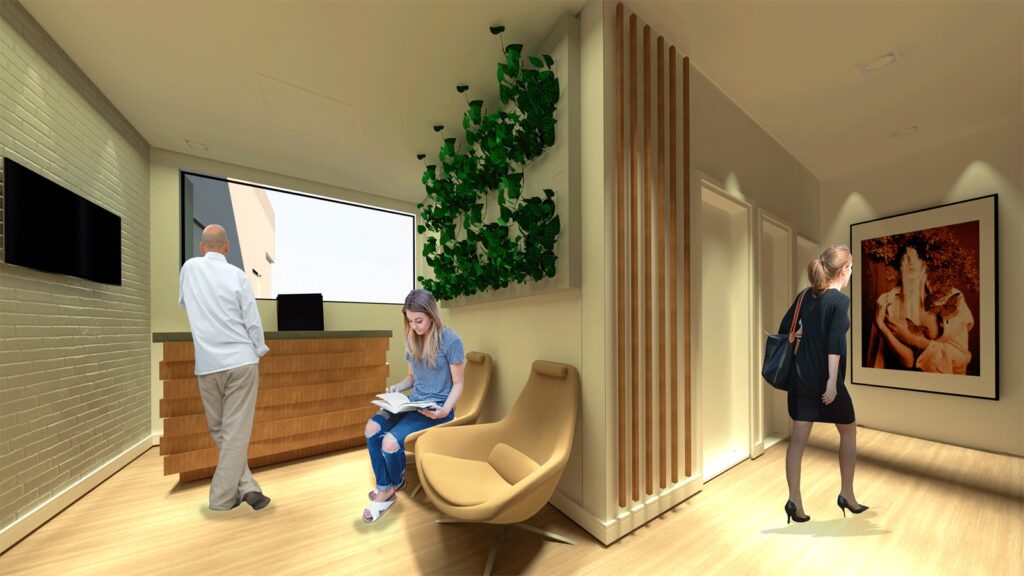 Um dos aspectos mais marcantes da renovação do prédio é a sua nova fachada. Os vãos serão ampliados e abertos para permitir uma maior transparência e comunicação visual entre o espaço interno e a cidade. O projeto também valoriza elementos originais do prédio, como os tijolinhos de barro, as tesouras da cobertura e as grandes portas de aço que dividiam os ambientes de produção. Tudo isso será preservado e incorporado ao novo design do edifício. A escolha dos materiais para a nova fachada do edifício é um elemento crucial do projeto. A combinação de tijolos aparentes, madeira, vidro, metal e paredes verdes ajuda a reforçar a ligação entre o passado e o presente do prédio.