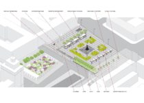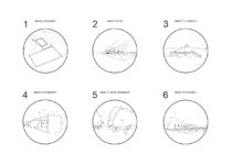 1. Definir uma praça e um jardim. O lote definido pelo concurso foi dividido em duas zonas, um espaço aberto retangular e um jardim delimitado por paredes que auxilia na conformidade do cruzamento.