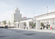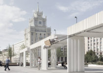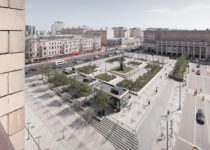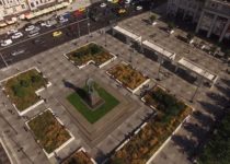 3. Ser mais clássico. A praça é conformada por edifícios clássicos Soviéticos. Novos eixos e árvores no perímetro são adicionadas para reforçar essa composição clássica.