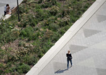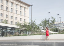 2. Planificar a praça. Originalmente, a praça tem uma forte inclinação, o que dificultava o uso do espaço. Ao planificar a superfície e elevar as divisas, a praça fica descolada das ruas e longe do movimento.