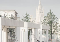 Descrição enviada pela equipe de projeto. A Praça Triumfalnaya está localizada no cruzamento da rua principal de Moscou, Tverskaya, com o Garden Ring. Buromoscow foi escolhido por um concurso, em 2013, de projetos de espaços públicos em Moscou. O objetivo era fazer renascer a praça originalmente projetada pelo arquiteto soviético Chechulin em 1958, a qual com o passar do tempo se tornou um espaço de trânsito, metade ocupada por estacionamentos. O escritório propôs quatro passos para o melhoramento do espaço: