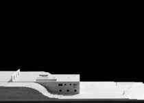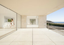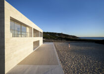 Ali levantamos uma residência como se fosse um cais no mar. Uma residência que é um pódio coroado por um plano horizontal superior. Sobre este plano horizontal estrondoso, claro e nu, nos situamos frente ao horizonte longínquo que traça o mar por onde o sol se põe. Um plano horizontal no alto, construído em pedra, em travertino romano, como se fosse areia, um plano infinito frente ao mar infinito. Nada mais e nada menos.