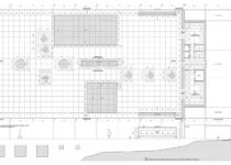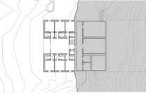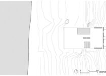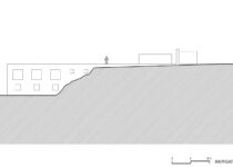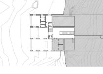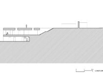 Para que esta plataforma tenha mais força incorporamos todo o terreno até o muro de entrada que nos separa da rua, também em travertino romano. A entrada da residência, transpassada por este muro, será feita como uma “trincheira” por escadas escavadas na superfície superior da plataforma.