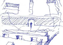 Há uma bela gravura de Rembrandt de 1655, “Cristo apresentado ao povo”, que sempre me fascinou. Nela, Rembrandt traça uma linha reta, horizontal. Perfeitamente reta e perfeitamente horizontal. É no limite da poderosa plataforma que a cena se desenrola. Ali, como Mies fez tantas vezes, o plano foi convertido em linha. Estou seguro de que Rembrandt e Mies gostaria da nossa casa plataforma, toda plataforma, só plataforma. E Adalberto Libera também, pois fez o mesmo quando construiu a Casa Malaparte em Capri. E a nós também, claro. Quando da praia contemplemos nossa residência, nos lembraremos de todos eles.