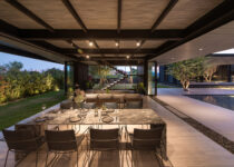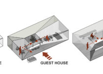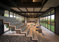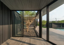 Com a estrutura do prédio sendo mais alta que a do pátio, a chuva cairá do telhado para o pátio como uma cortina d’água. O telhado é também complementado com vigas que naturalmente se adequam à estrutura. O teto também é paralelo à cobertura. Esta linguagem foi aplicada para servir diferentes funções nas três partes principais do edifício.
