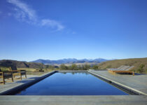 A casa é composta de quatro edifícios, está centrada em torno a um pátio central e uma piscina. Eles não se encostam, mas se conectam através da ideia de um pequeno acampamento que podemos ir de barraca em barraca. Os materiais são duros no exterior devido ao clima de alto deserto, mas com o interior bastante acolhedor, é como um saco de dormir, quente e seco.