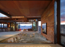 O revestimento de madeira utilizado em todo o projeto foi resgatado de um antigo celeiro em Spokane. Os variados tons da madeira revelam sua história e uso. O vidro é muito importante, nunca gostei estar em um ambiente que não se sente parte do exterior. Sempre gostei de ter uma boa quantidade de vidro, tomar em conta o permitido por legislação e ao invés de salpicar por aí de maneira espaçada, concentrá-la em apenas um lugar para fazer uma conexão vívida com a paisagem.